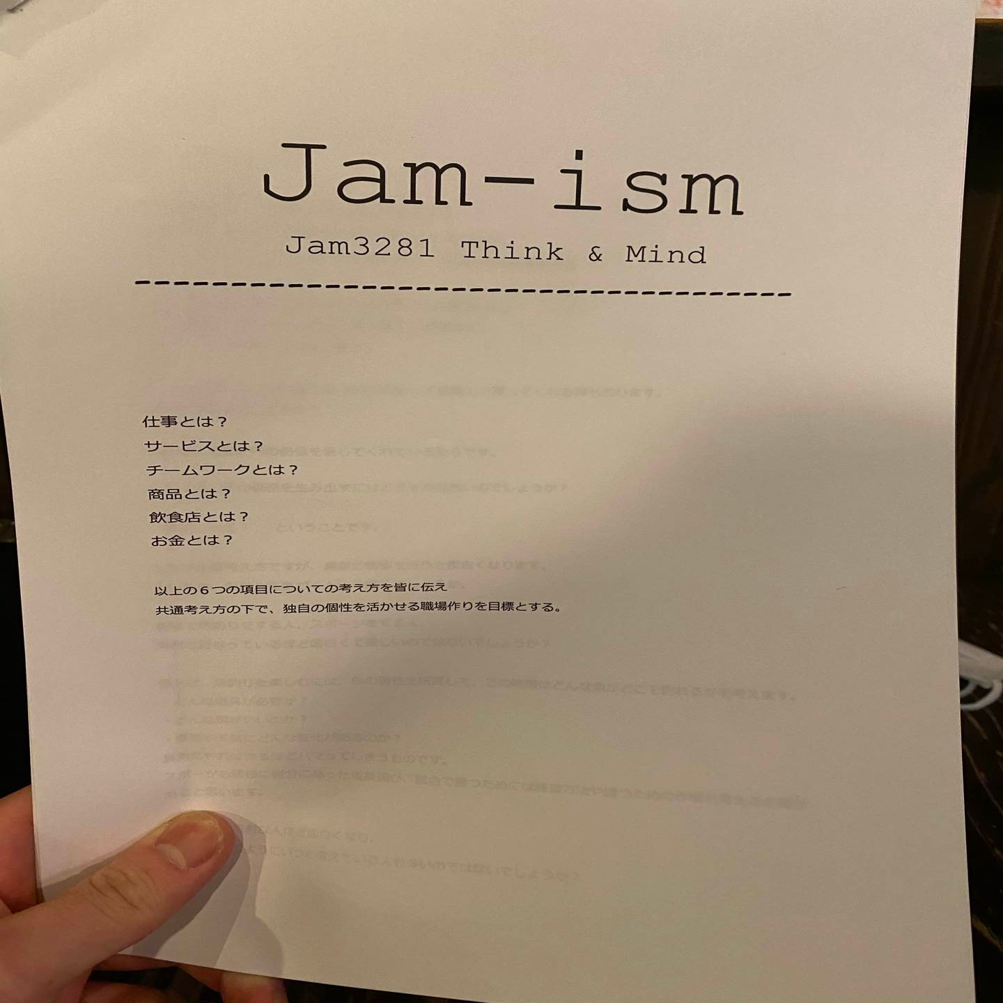 Jam3281では、働く上で「Jam ism」という大切にしている考え方があります。